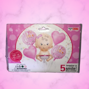 J FIESTA SET GLOBOS MTL 5PZ BABY GILR #10Y-67